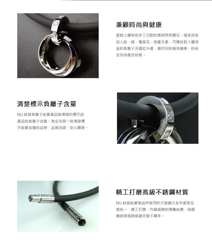 | 材質 | 316 不鏽鋼 +矽膠 + NU 特製能量粉 |