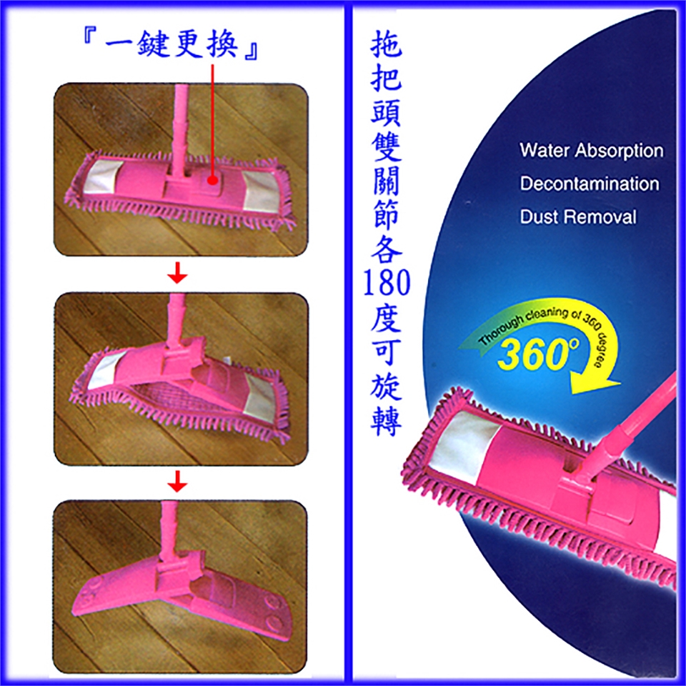 ■『一鍵更換』拖把頭設計,輕輕一按,拖把頭立即可對折拆下清洗,輕鬆自在。