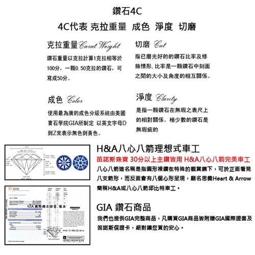 ◆注意事項:鑽石具有解理方向(劈裂方向),雖然鑽石很堅硬,但猛烈而角度不對的撞擊仍可能使得鑽石碎裂,從事可能損壞珠寶的活動之前,應先取下配戴的飾品。