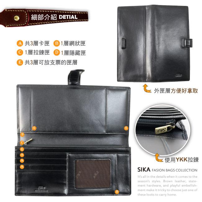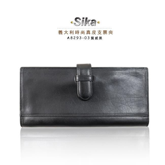 Sika義大利時尚真皮支票夾A8293-03質感黑