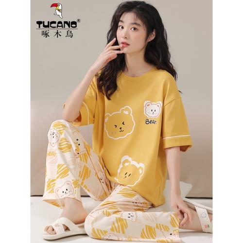 啄木鳥純棉睡衣女夏天套裝 短袖 清新女士2025新款春秋冬季家居服