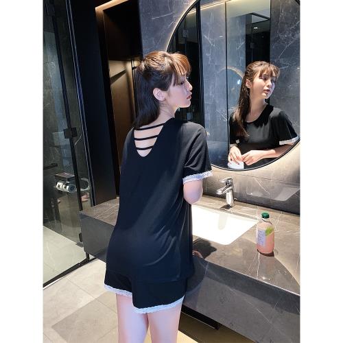 莫代爾睡衣女夏季胖MM大碼200斤寬松短袖短褲夏款家居服兩件套裝