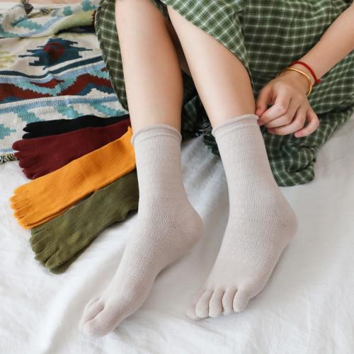 5雙 五指襪女中高筒春秋季分腳趾純色棉襪子日系素雅花邊松口不勒