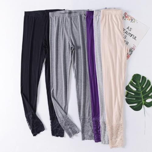 莫代爾薄款高腰內穿打底褲蕾絲邊修身美體線褲保暖褲秋褲大碼女