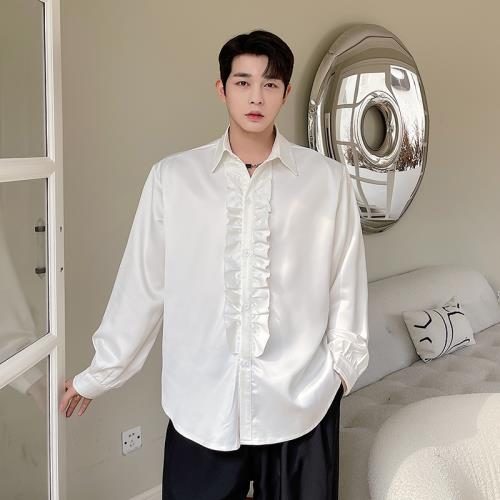 法式洋氣花邊襯衫男長袖免燙上衣潮流韓版輕奢小眾高端垂墜感襯衣
