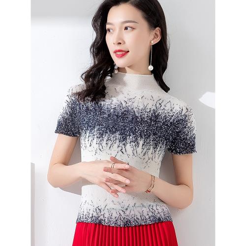 PY褶皺上衣女短袖三宅春夏裝新款百搭修身短款白色打底丅恤女洋氣