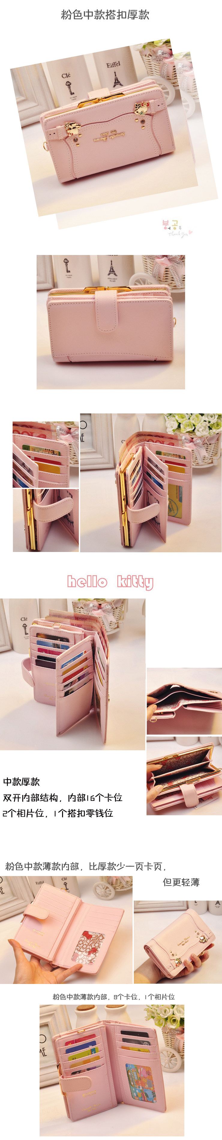 中款內部16個卡位,2個相片位,1個搭扣零錢位,側面1個雙層大鈔位