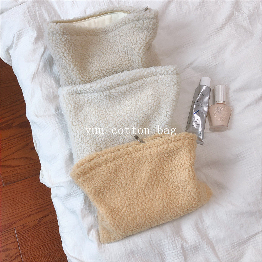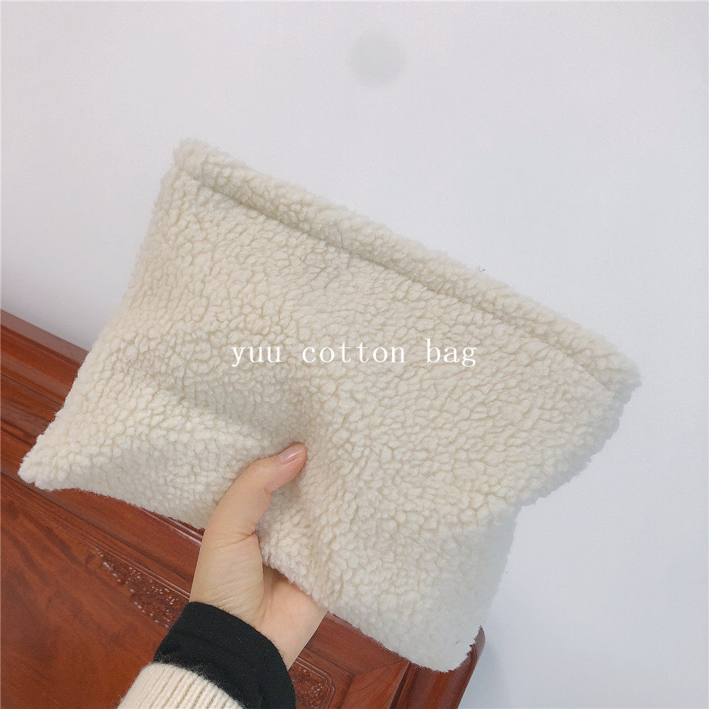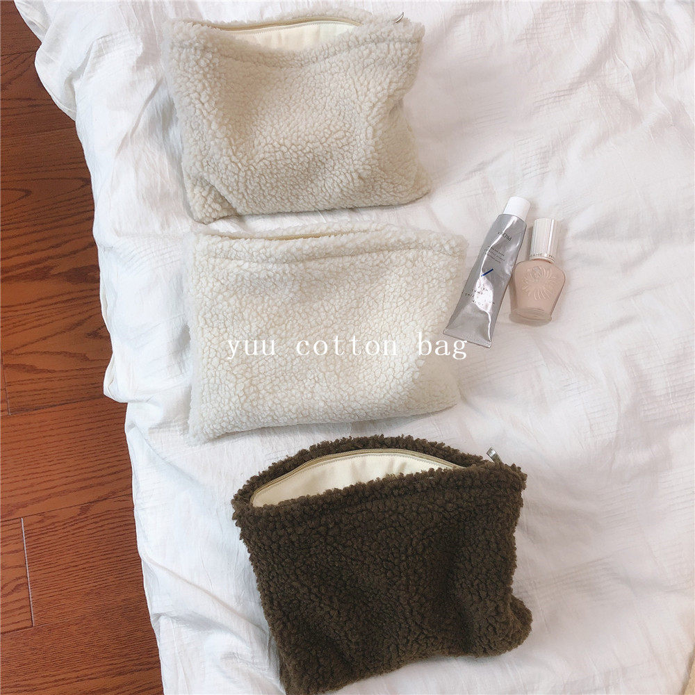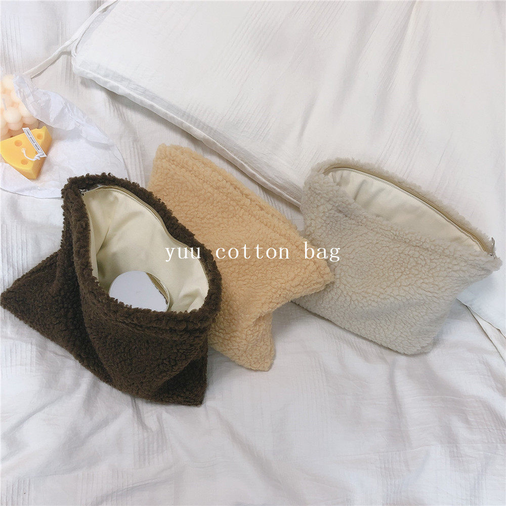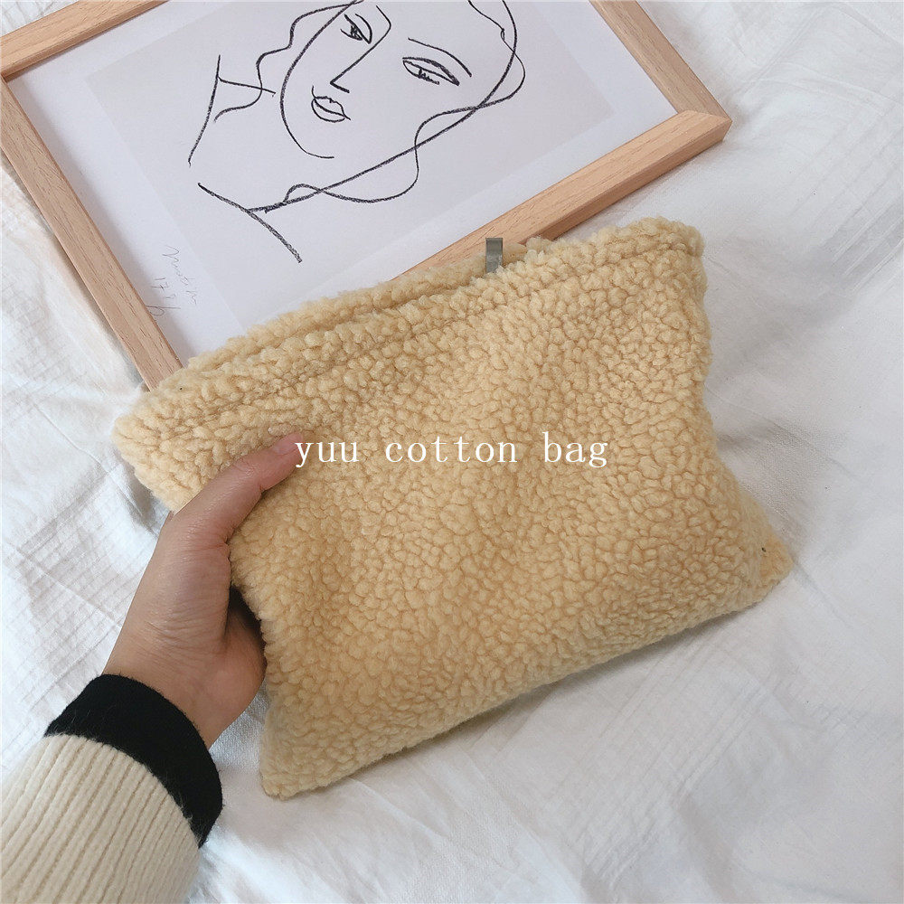 純色羊羔毛手包 手拿包 化妝包 洗漱包