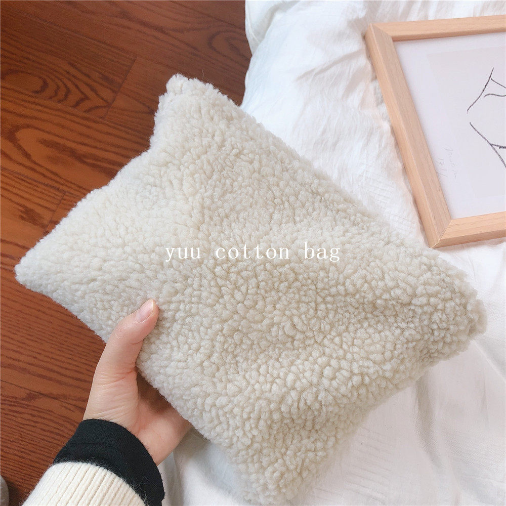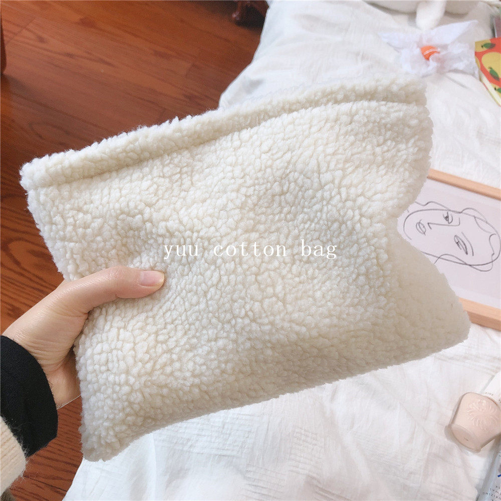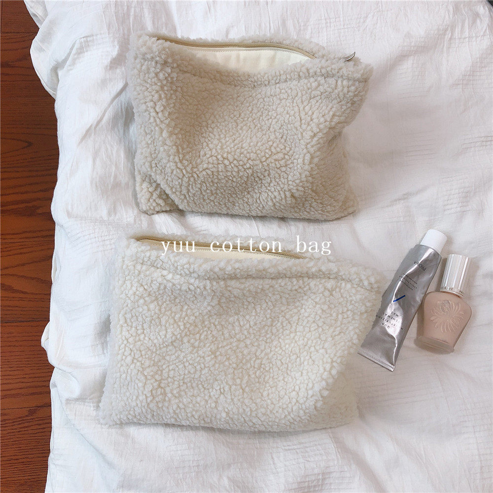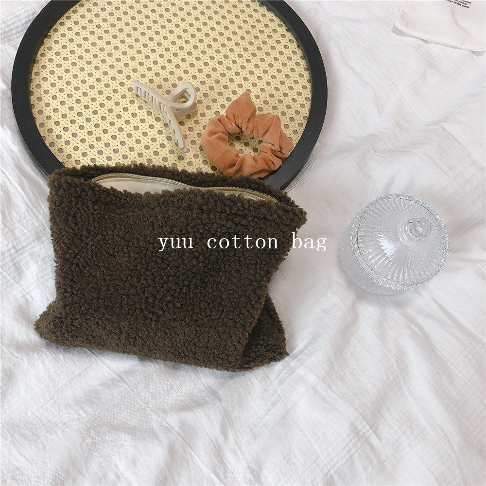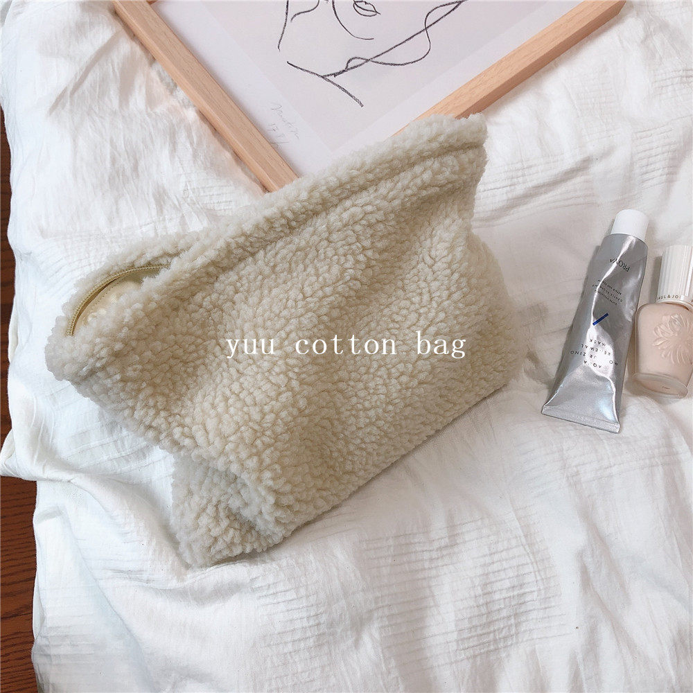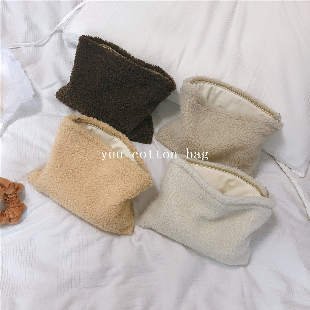 純色羊羔毛手包 手拿包 化妝包 洗漱包