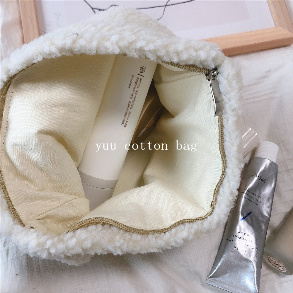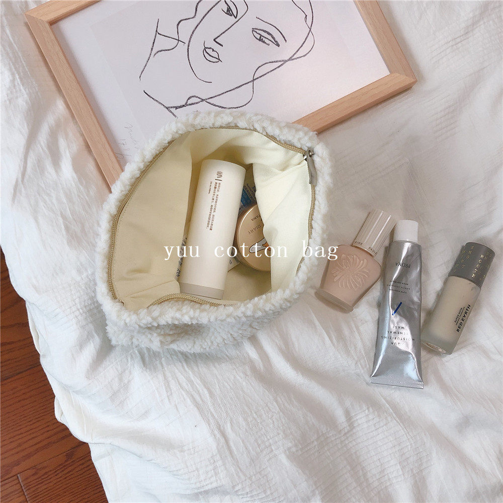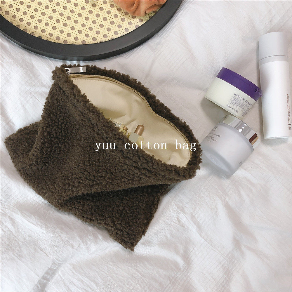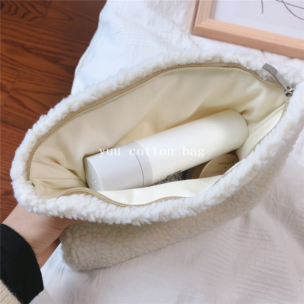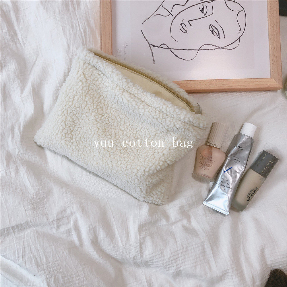 純色羊羔毛手包 手拿包 化妝包 洗漱包
