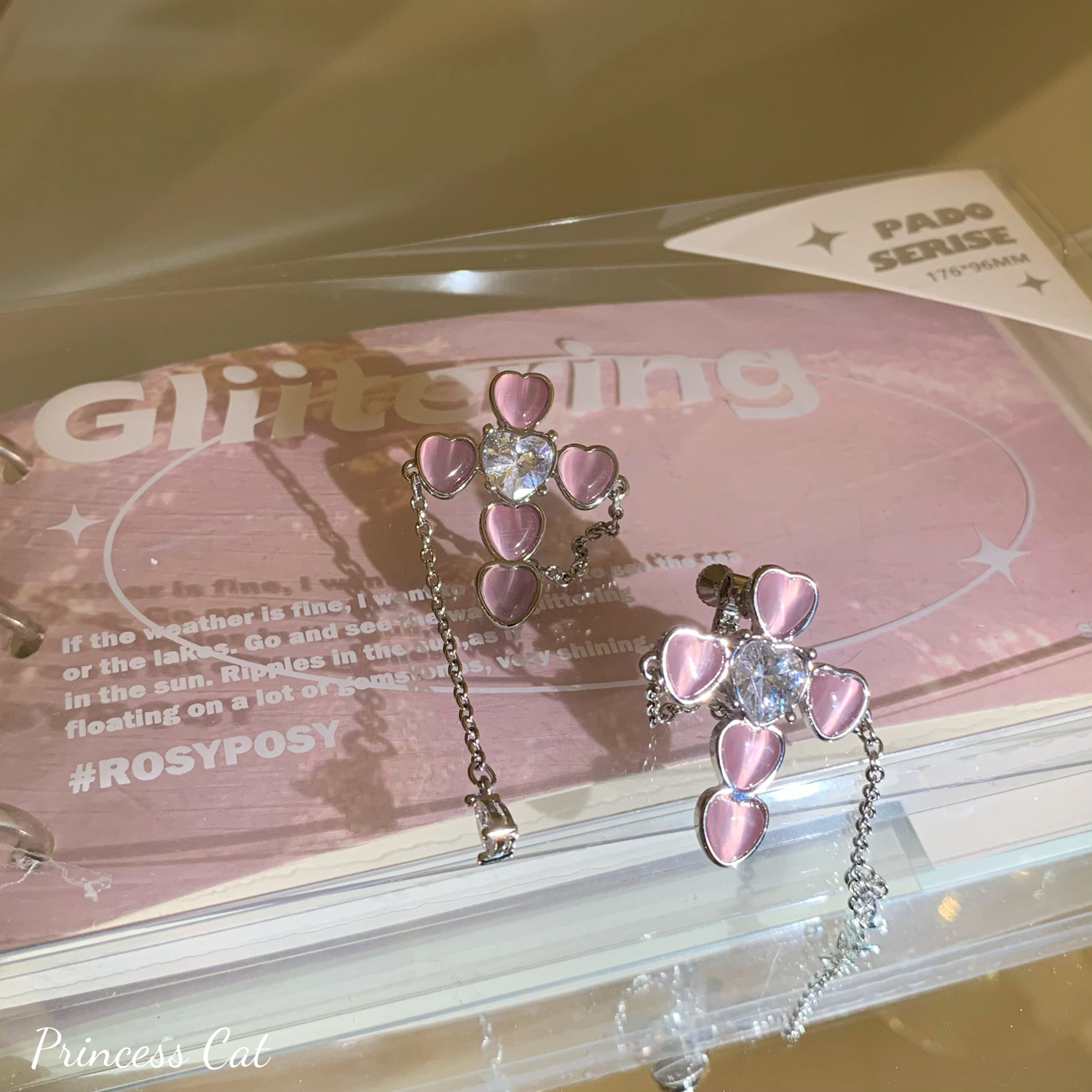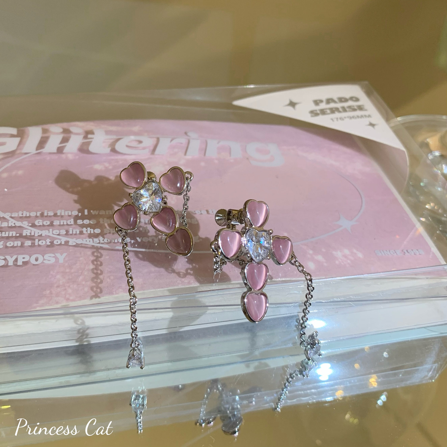 小眾的粉色愛心貓眼石鑲嵌而成的十字架