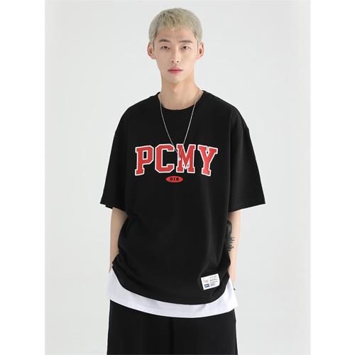 張峻豪同款 PCMY校園體短袖潮牌學生情侶裝圓領寬松休閑夏季T恤
