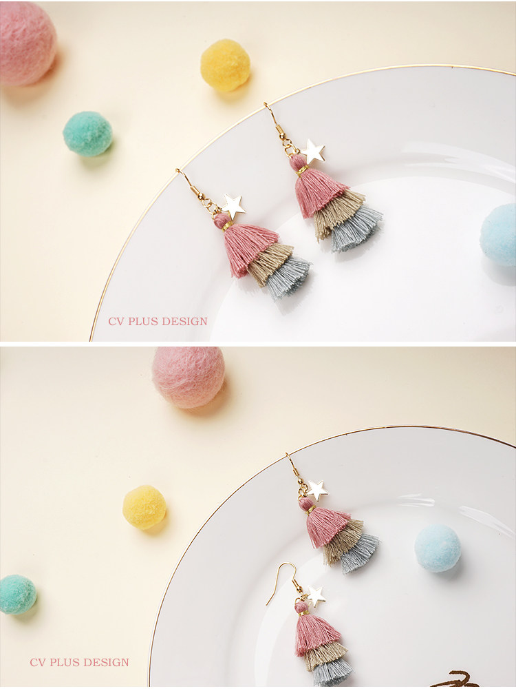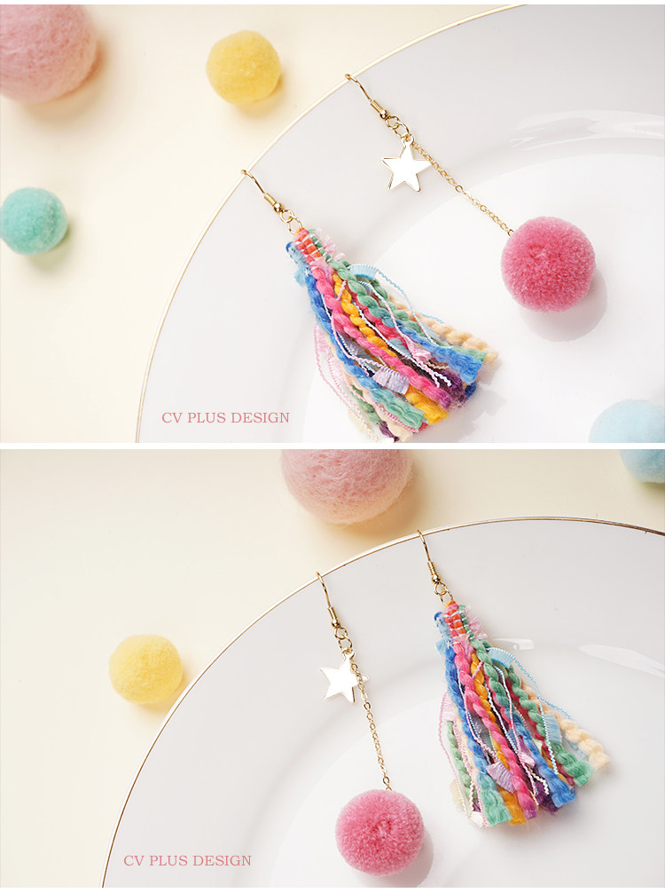 | 尺寸:長6cm 寬1.8cm | 材質:925銀針 保色合金 彩色流蘇 |