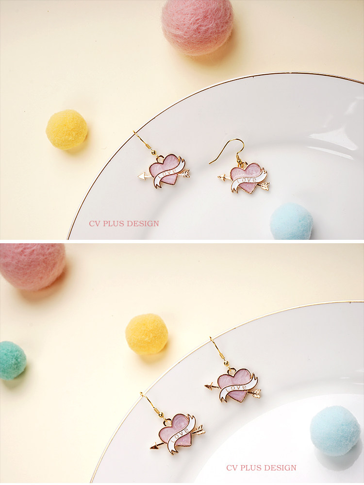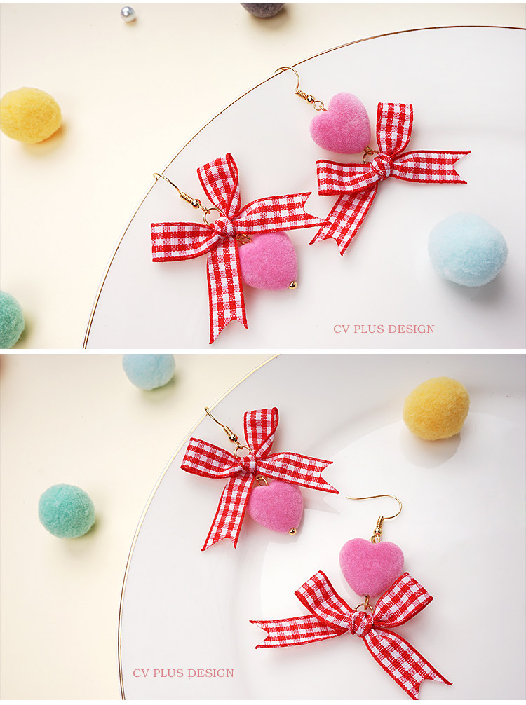 | 尺寸:長5cm 寬3.5cm | 材質:925銀針 保色合金 絲絨桃心 格子織帶 |