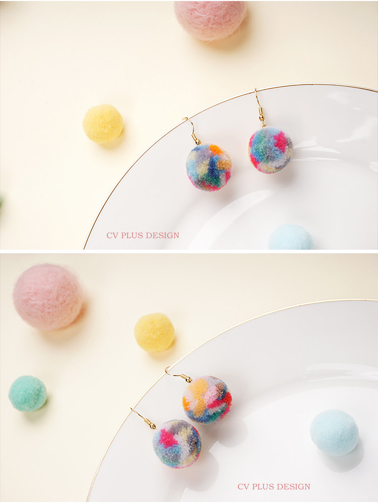 | 尺寸:長4cm 寬2cm | 材質:925銀針 保色合金 開司米毛球 |