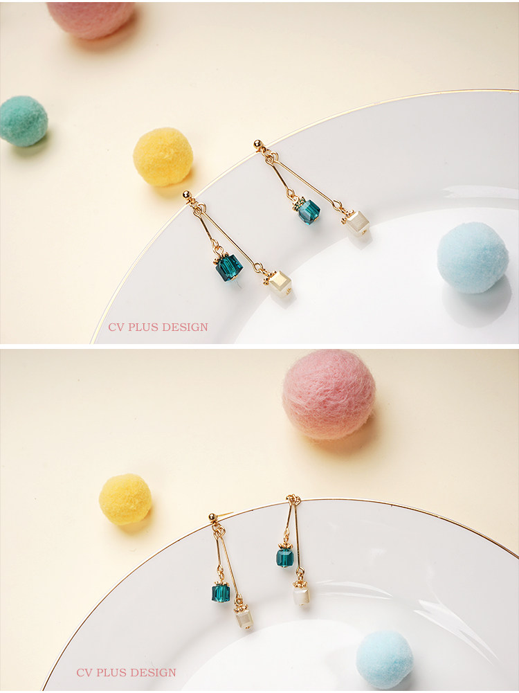 | 尺寸:長4.5cm 寬1cm | 材質:925銀針 保色合金 人造水晶 |