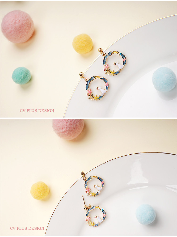 | 尺寸:長3cm 寬2cm | 材質:925銀針 保色合金 珠光彩釉 |