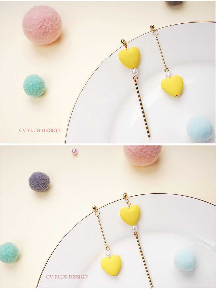 | 尺寸:長7cm 寬1.5cm | 材質:925銀針 保色合金 磨砂桃心 人造珍珠 |