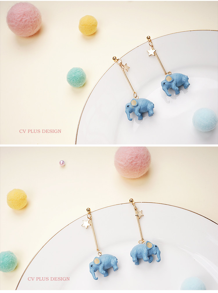 | 尺寸:長 5 cm 寬2.2 cm | 材質:925銀針 保色合金 彩色大象 |