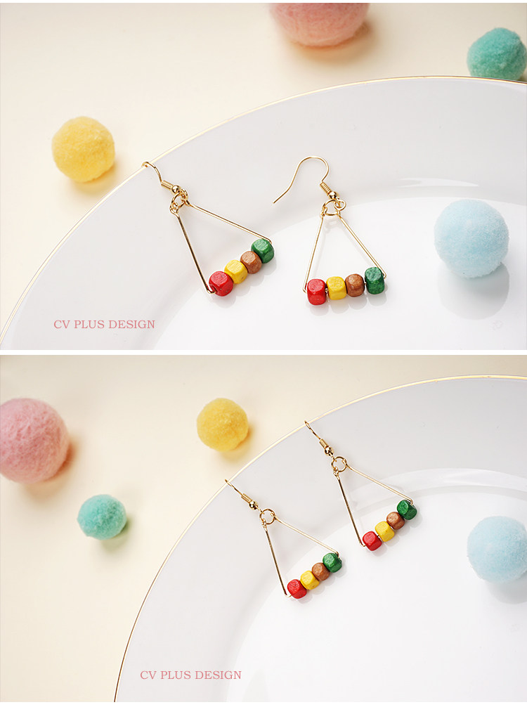 | 尺寸:長5cm 寬2cm | 材質:925銀針 保色合金 彩色木珠 |