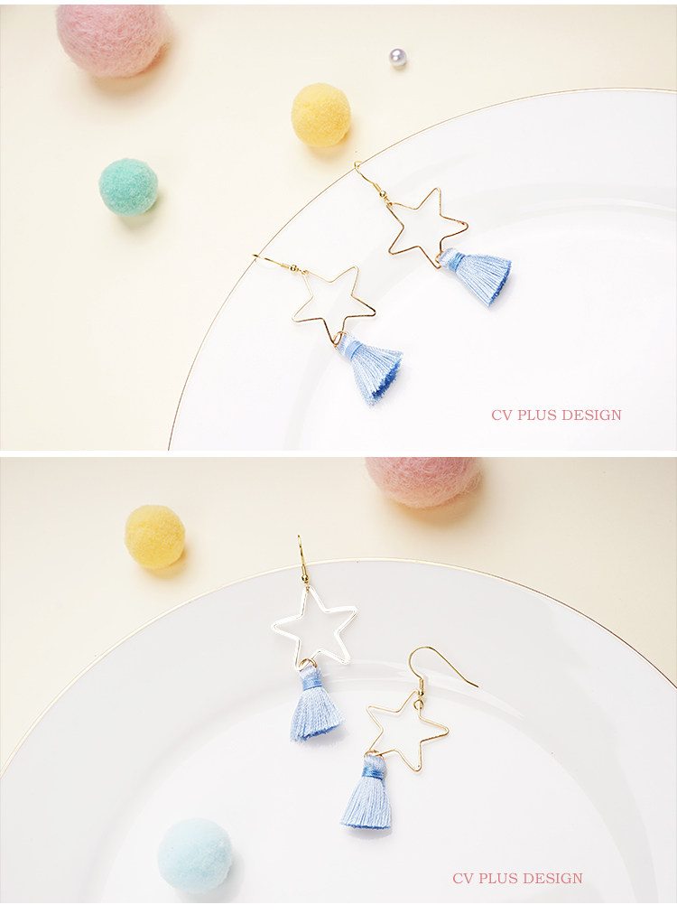 | 尺寸:長5cm 寬2.5cm | 材質:925銀針 保色合金 冰絲流蘇 |