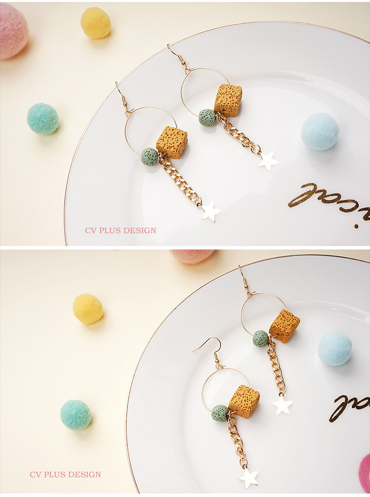 | 尺寸:長6cm 寬3cm | 材質:925銀針 保色合金 彩色土陶 |