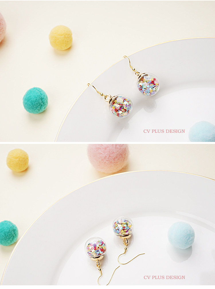 | 尺寸:長3.5cm 寬1.5cm | 材質:925銀針 保色合金 玻璃球 彩色亮片 |