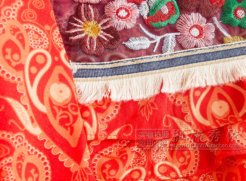 胸前拼接重工刺繡網紗,民族風十足