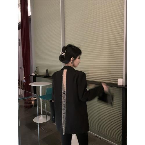 露背鏤空鏈條薄款西裝外套女2025春夏高級感黑色休閑廓形寬松西服