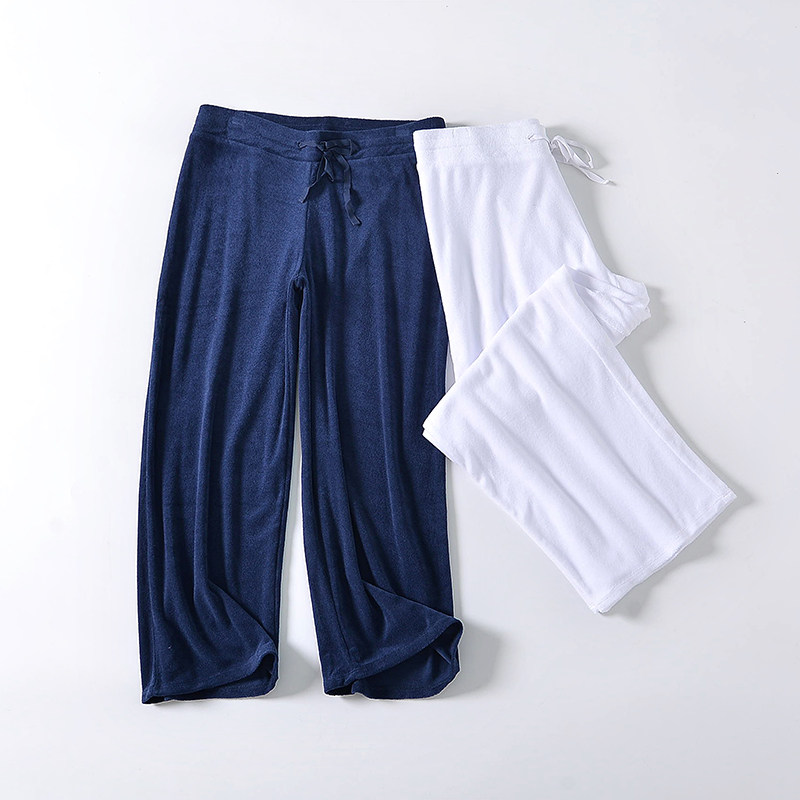 胖MM夏秋新款,歐美加肥加大碼女裝,棉彈針織面料闊腿休閑九分褲,褲子表面是類似毛巾面料,里面是光滑的針織面料,腰圍有系繩,高腰闊腿型有彈性,穿上親膚舒適,修飾腿型,厚薄適中,春夏秋可穿,微瑕付款減庫存。