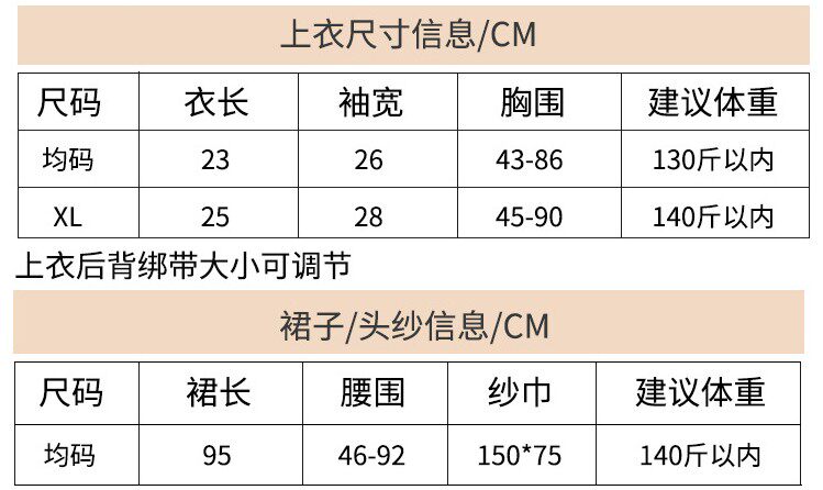 兩件套 上衣+裙子 =83元三件套 上衣+裙子+吊幣腰鏈=98元五件套 上衣+裙子+吊幣腰鏈+頭紗+頭飾=115六件套 上衣+裙子+吊幣腰鏈+頭紗+頭飾+項鏈= 125元七件套 上衣+裙子+吊幣腰鏈+頭紗+頭飾+項鏈+耳環 135元八件套 上衣+裙子+吊幣腰鏈+頭紗+頭飾+項鏈+耳環 +圓手環= 145元上衣尺碼:均碼 胸圍86 肩膀37 手臂27 XL 胸圍90 肩寬41 手臂33
