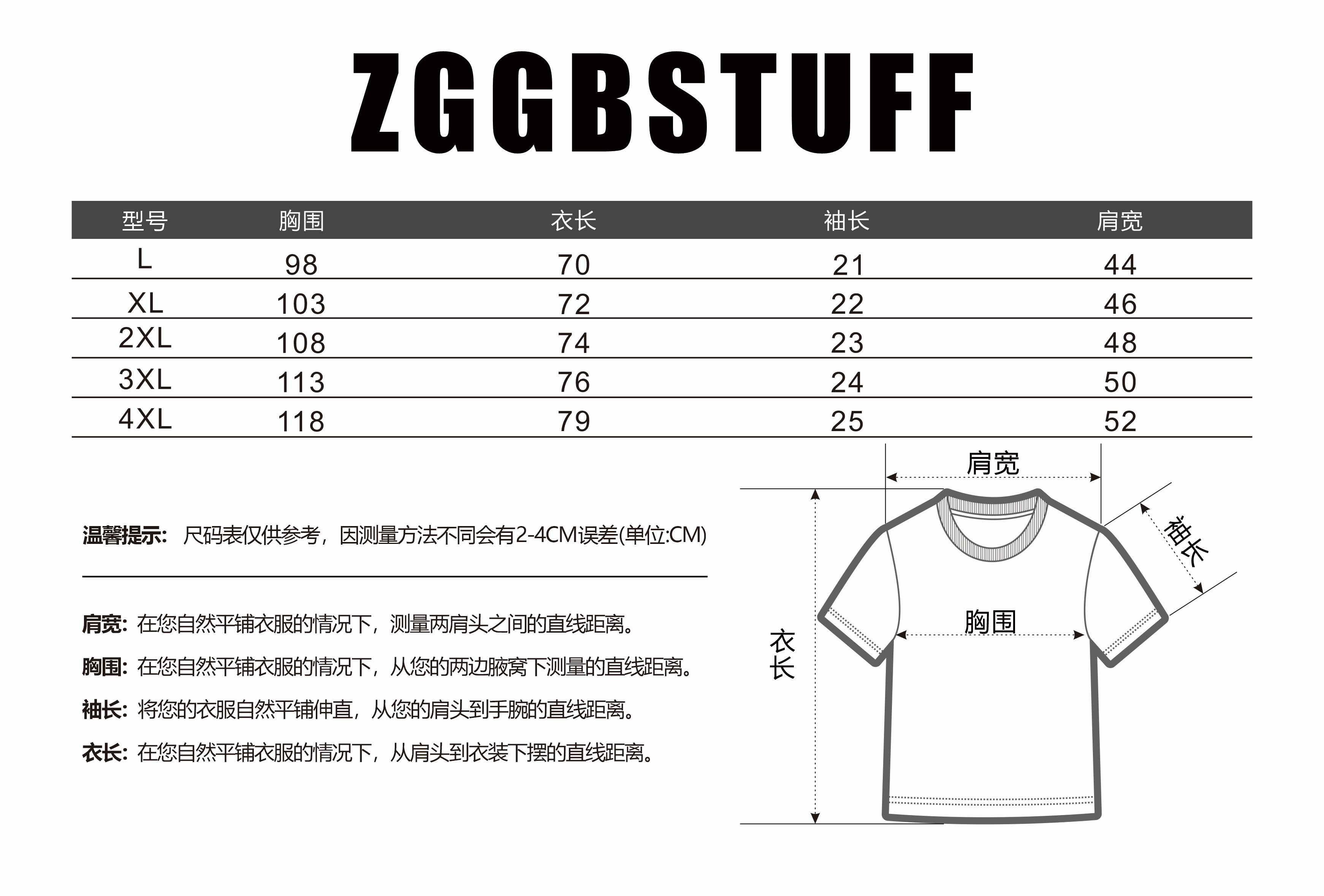 所有衣物實測數據均為標準軟尺平鋪貼緊歸零拉直測量