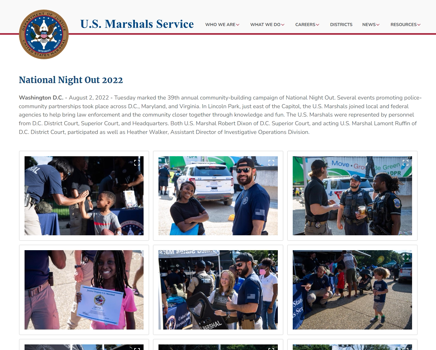 空閑法警代表與其它聯邦執法部門和社區居民