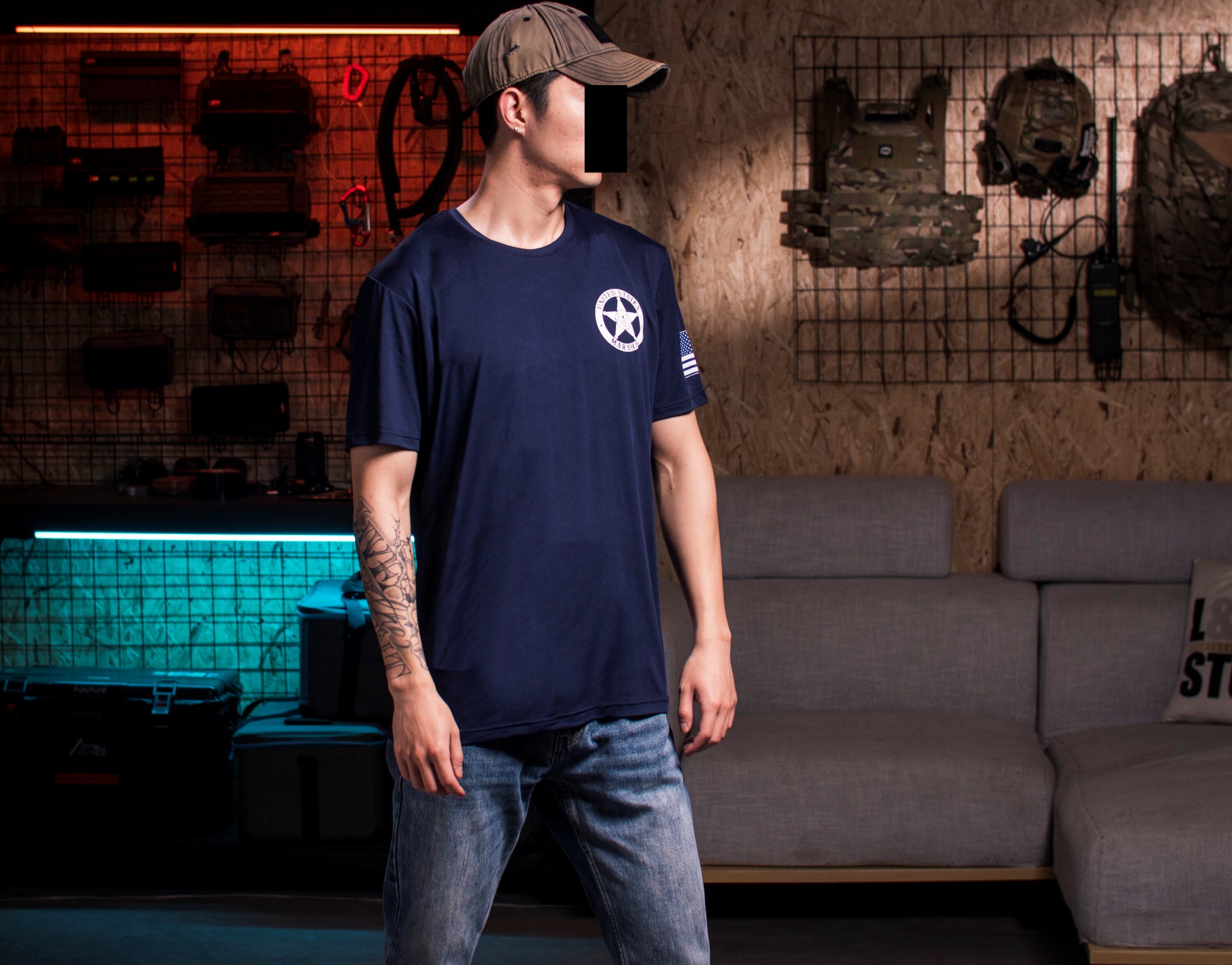 T恤也有長袖短袖、是否帶國旗、以及黑藍色數種