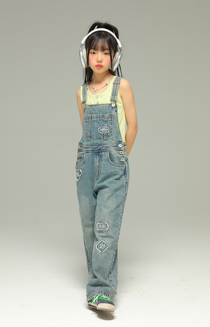 “慵懶風個性貼布背帶褲”
