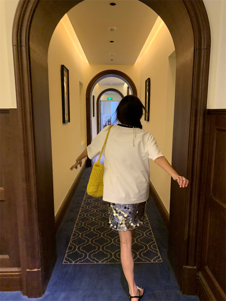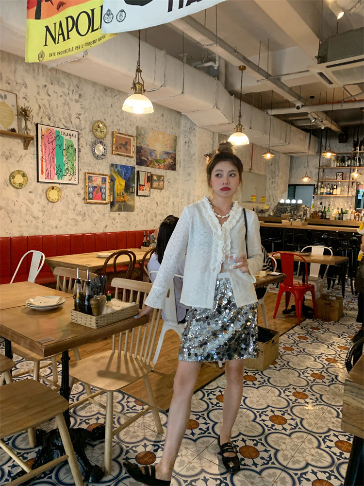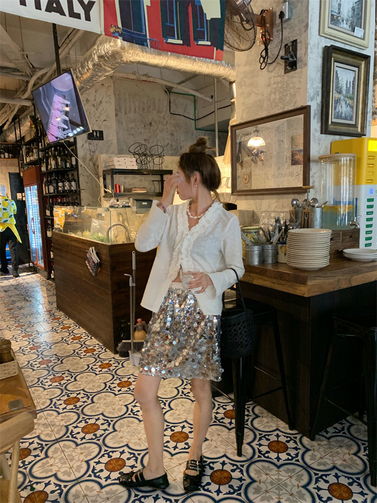 重工面料,挺括有型,銀色亮片高級感滿滿~