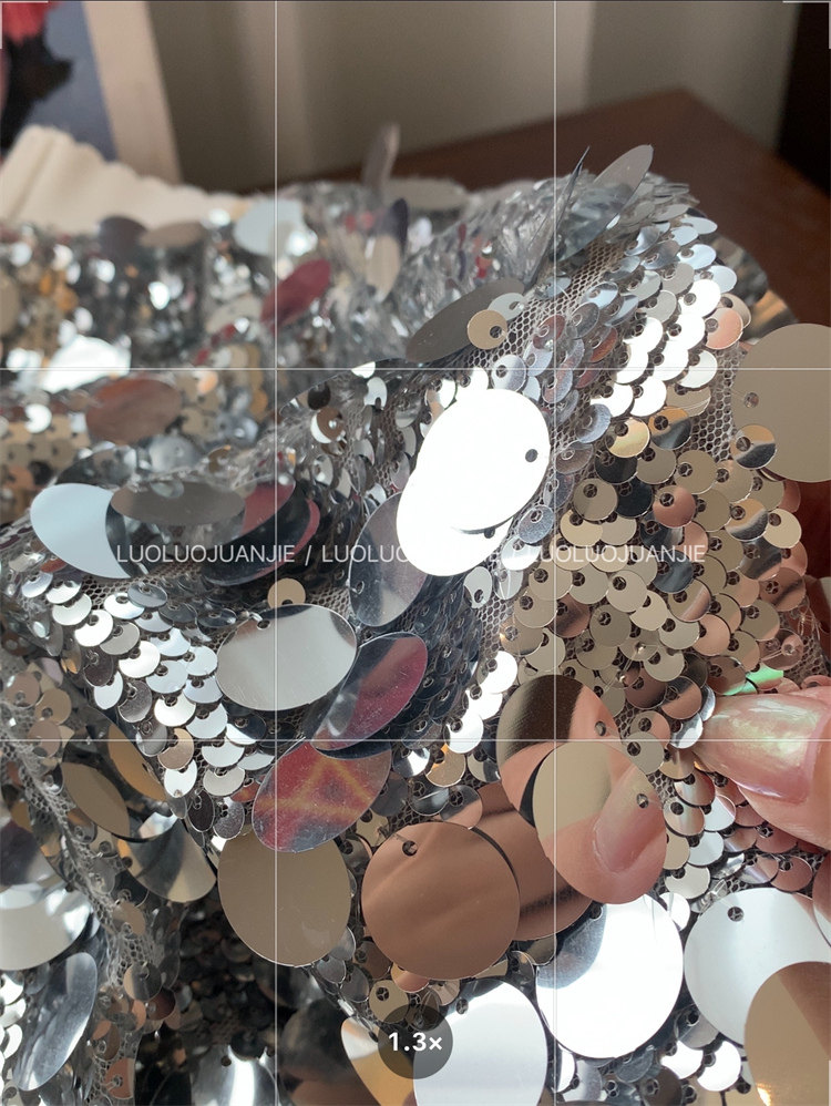 大小銀色亮片疊加排布,結實不易掉落~
