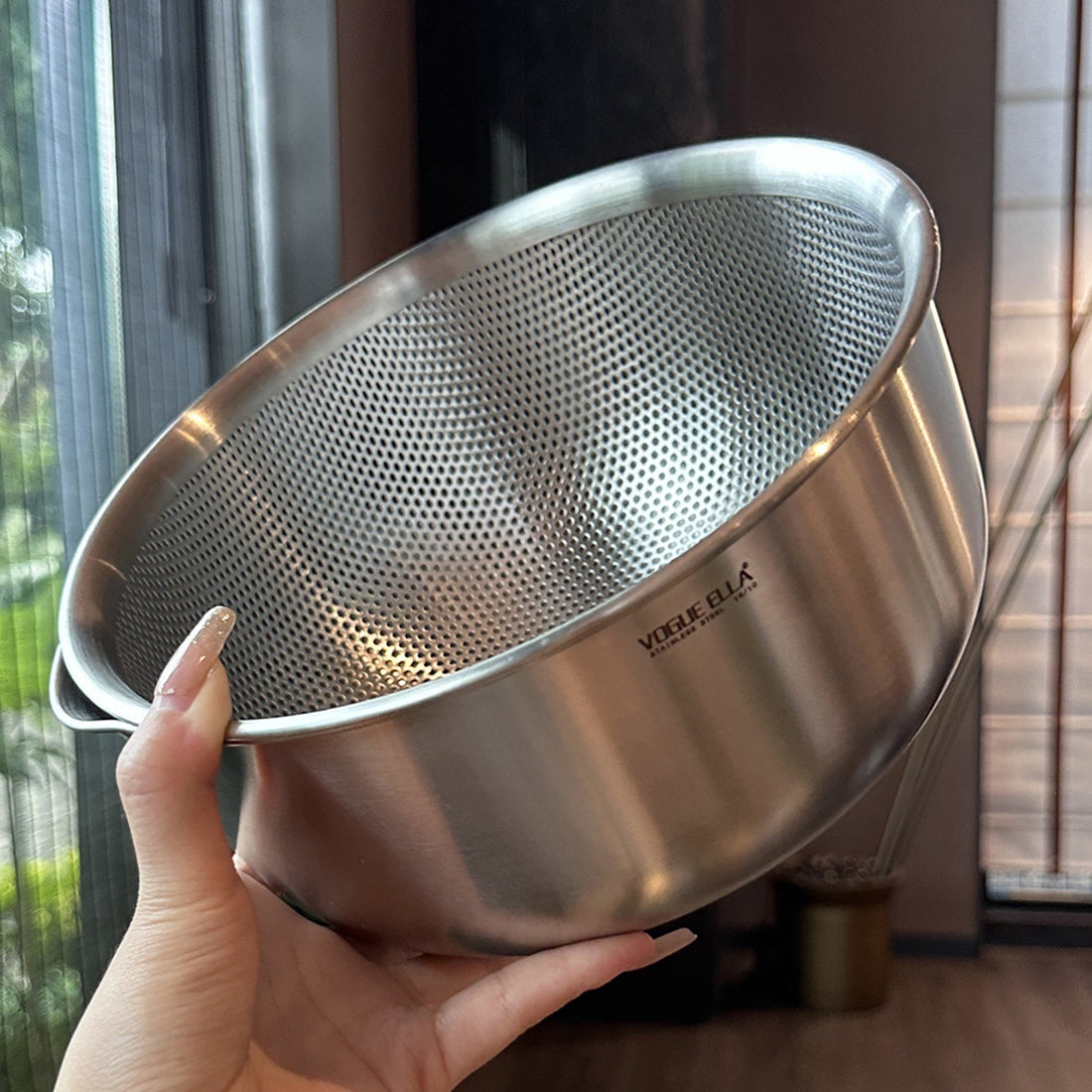 VE洗菜籃水果籃不銹鋼淘米籃18/10洗菜盆套裝加厚瀝水籃打蛋盆