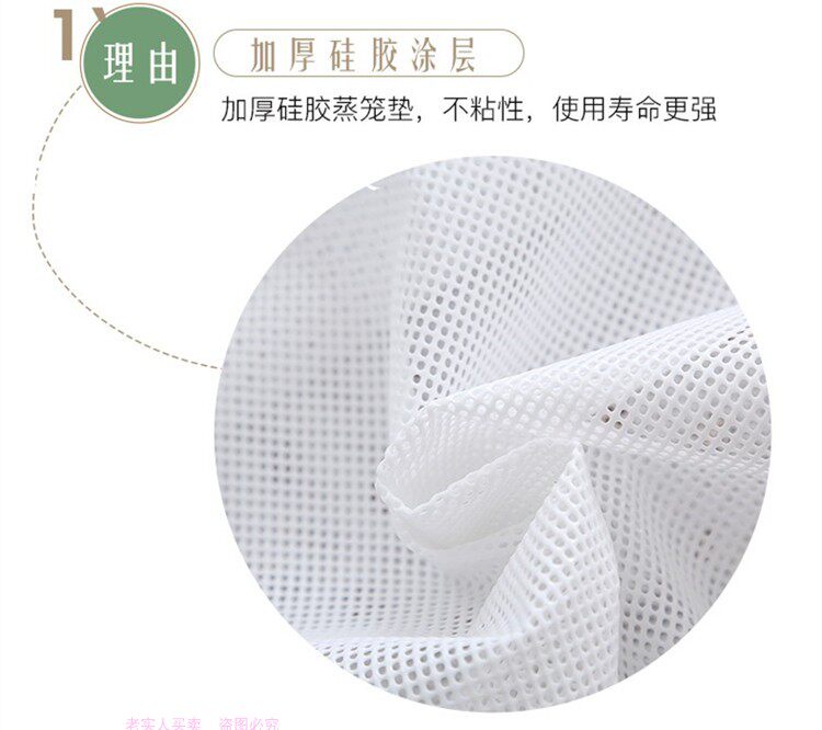 可以定制 詳情請聯系1.本店是合肥華風新型材料有限公司廠家直營!繞過中間環節!2.各種圓形方形尺寸都有貨的!有白色和米黃色2種籠布 3.需要特殊尺寸聯系客服!4.通過國家質檢部門認證,可以提供證件!使用方法:1、拿到產品后用溫水浸泡30分鐘后自然晾干,方可使用(可放入適量食用油增加潤滑性,不能用洗滌劑浸泡清洗)。2、正常每隔20天溫水浸泡清洗一次,不能刷洗,洗衣機洗。產品特點:耐高溫230°,耐低溫40°,不開裂,防腐蝕性,衛生健康,無害,柔軟,彈性好,耐扭結而不變形,是一種新型環保材料。通過食品衛生部門檢驗,有相關安檢證書,放心使用。 材質:使用表面涂層采用進口食品級硅膠,基材采用的是高品質滌綸纖維布,壽命1-2年
