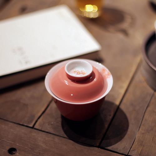 《櫻花粉》慕芳蓋碗 無托茶碗 手繪釉下彩 景德鎮桃紅 女士粉色茶