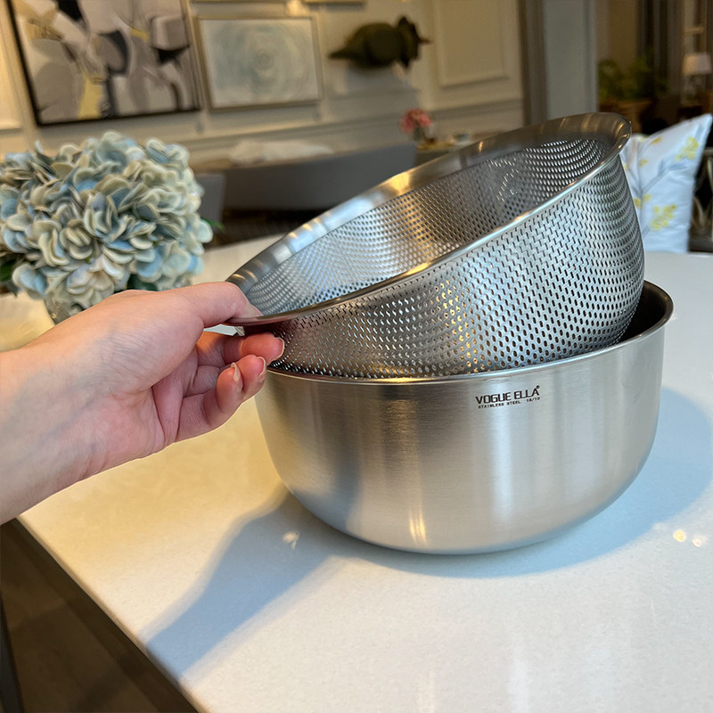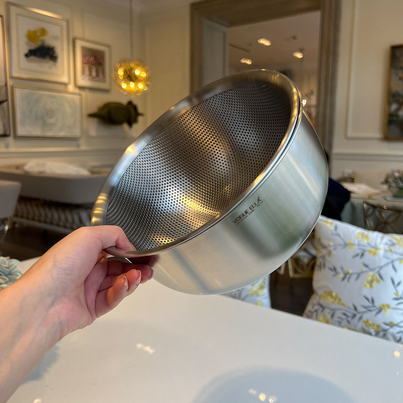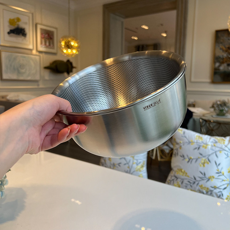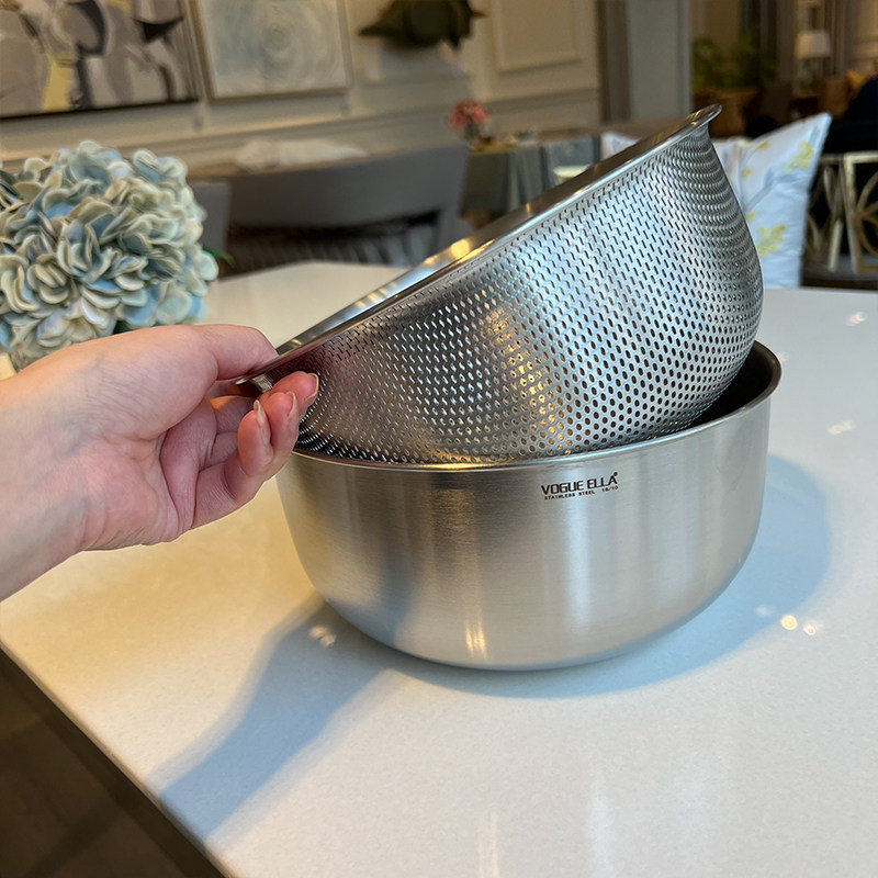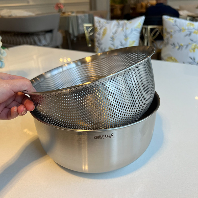 VE洗菜籃水果籃304不銹鋼淘米籃18/10洗菜盆套裝加厚瀝水籃打蛋盆