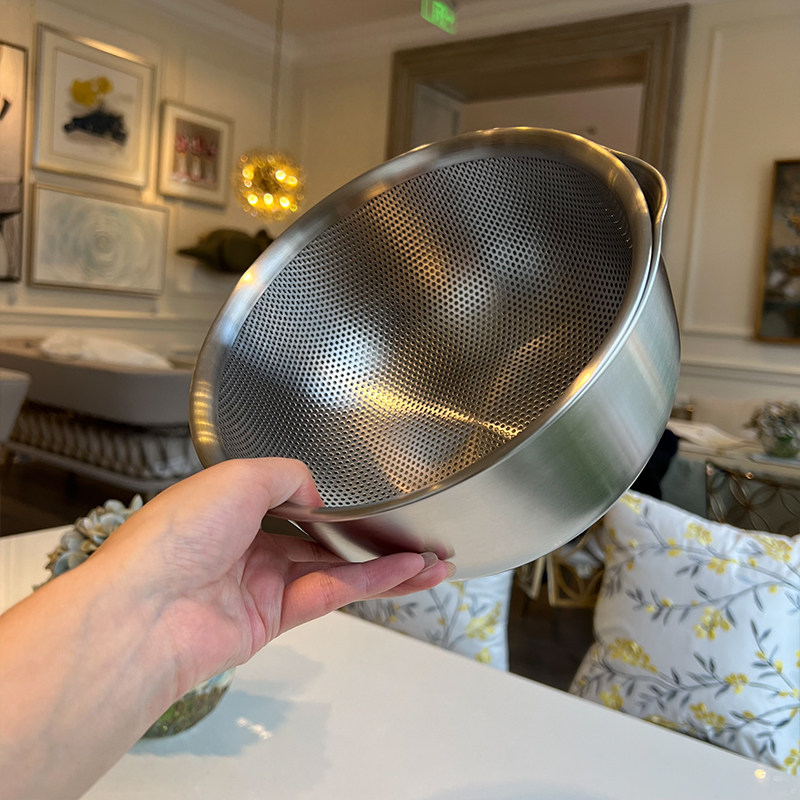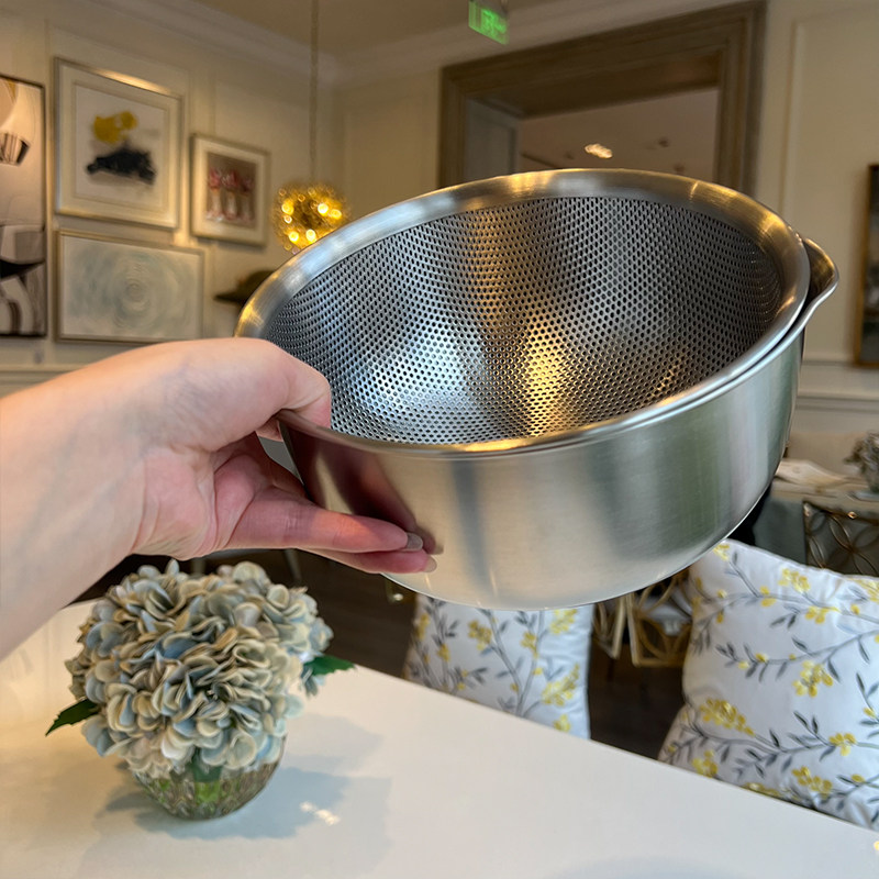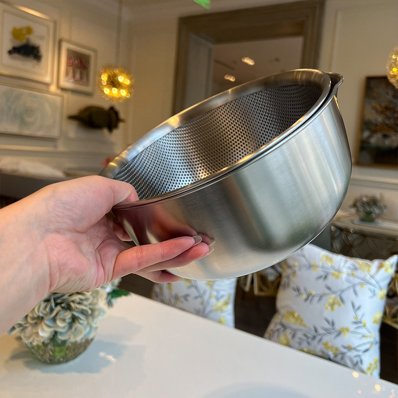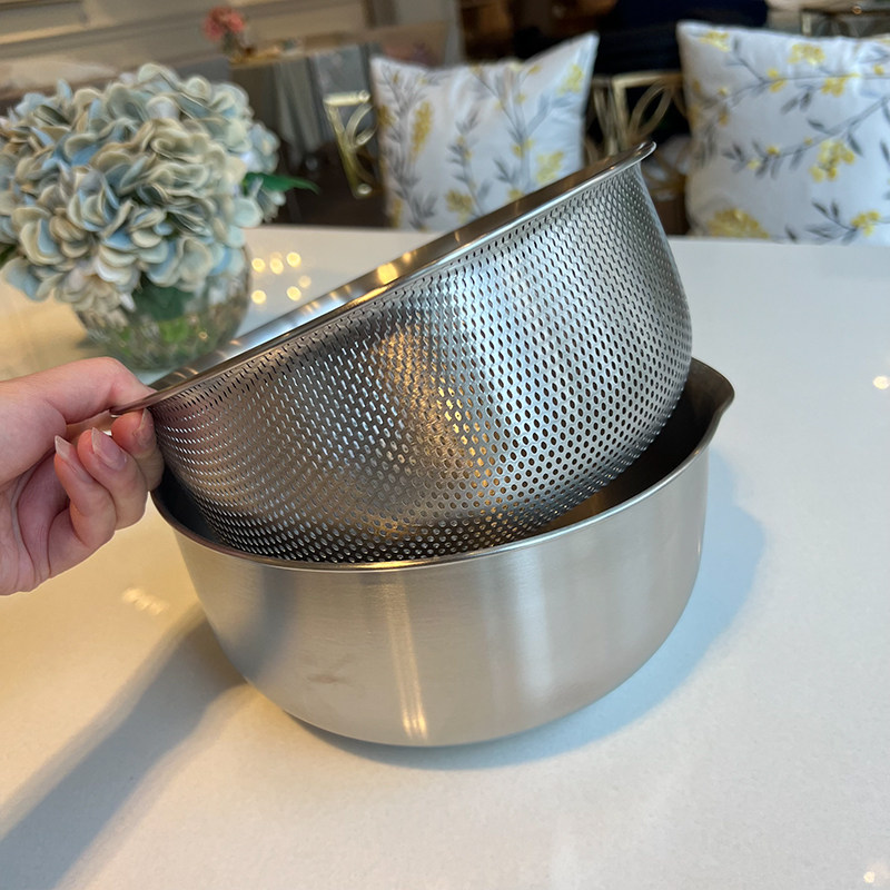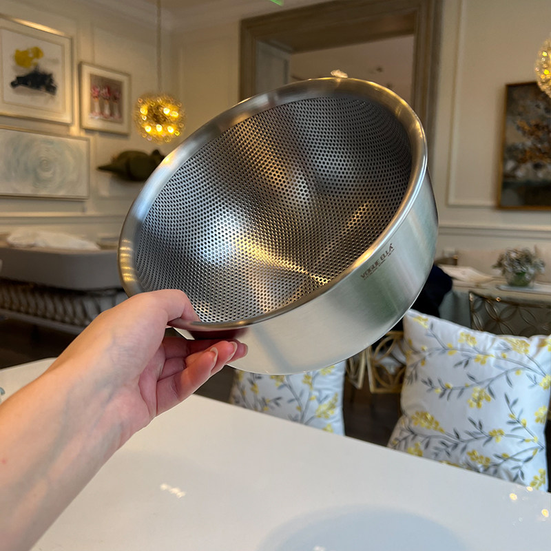 VE洗菜籃水果籃304不銹鋼淘米籃18/10洗菜盆套裝加厚瀝水籃打蛋盆