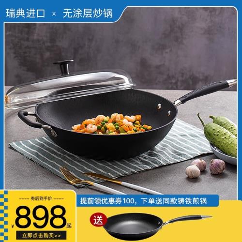 Ronneby Bruk瑞典鑄鐵炒鍋無涂層物理不粘生鐵平底鍋家用炒菜