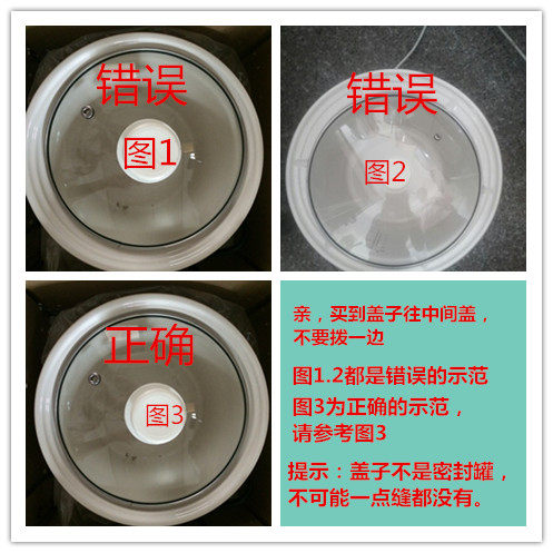 親,蓋子不是密封罐哦,不可能一點縫都沒有,只要蓋得住不會掉下去就可以,畢竟和你的鍋不是的原裝的,能找到配套用的已經不容易了,我們都是為了很多買家買不到蓋子而苦惱,才設置單獨賣蓋子,完美主義的買家請繞道,謝謝。很多買家總是喜歡把蓋子蓋一點,導致蓋子看起來好像不能用,我們已經挑出2個錯誤的示范給各位買家參考參考,請親不要買到蓋子用錯誤的蓋法來咨詢說蓋子尺寸偏小