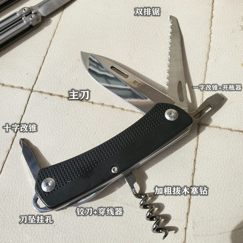 這是中國制造瑞刀概念(瑞士軍刀),如改裝后的萊刀(萊澤曼刀鉗)刪繁就簡,保留有用的,功能有效的,EDC本不是累贅之物,不是貴重之物,就一頓鎖骨炸雞的價。全尺寸沒縮減。手感優秀,材質穩定,刃口鋒利,硬度高,保用多年經久不壞。