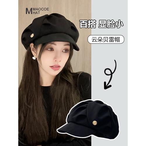 帽子女款2023新款貝雷帽云朵畫家顯臉小百搭日系褶皺鴨舌八角帽子