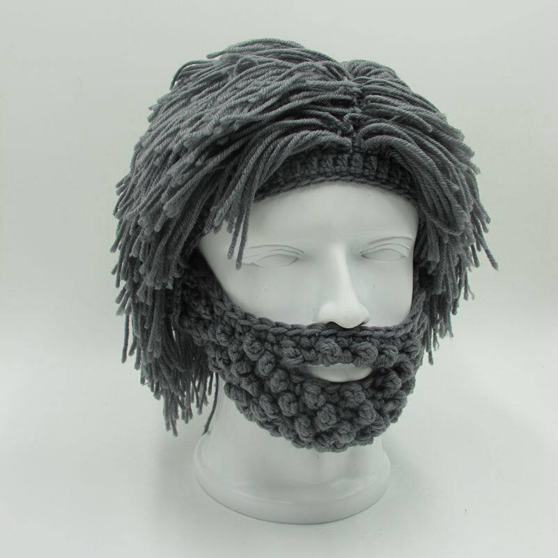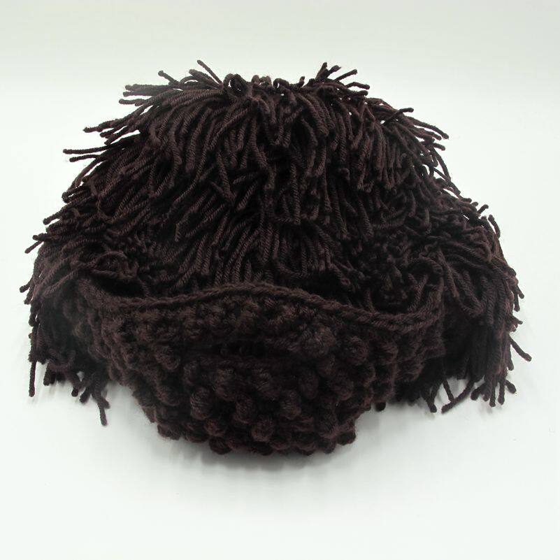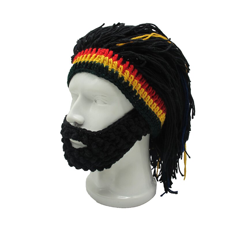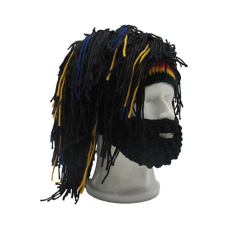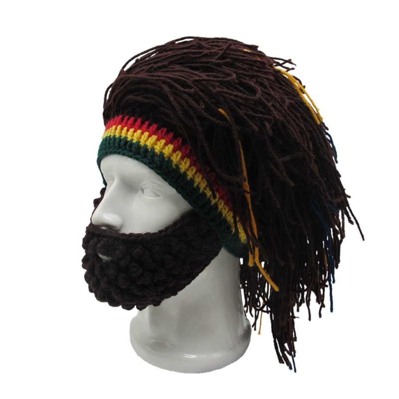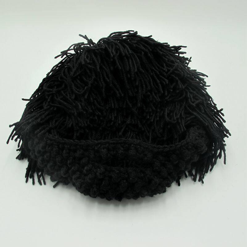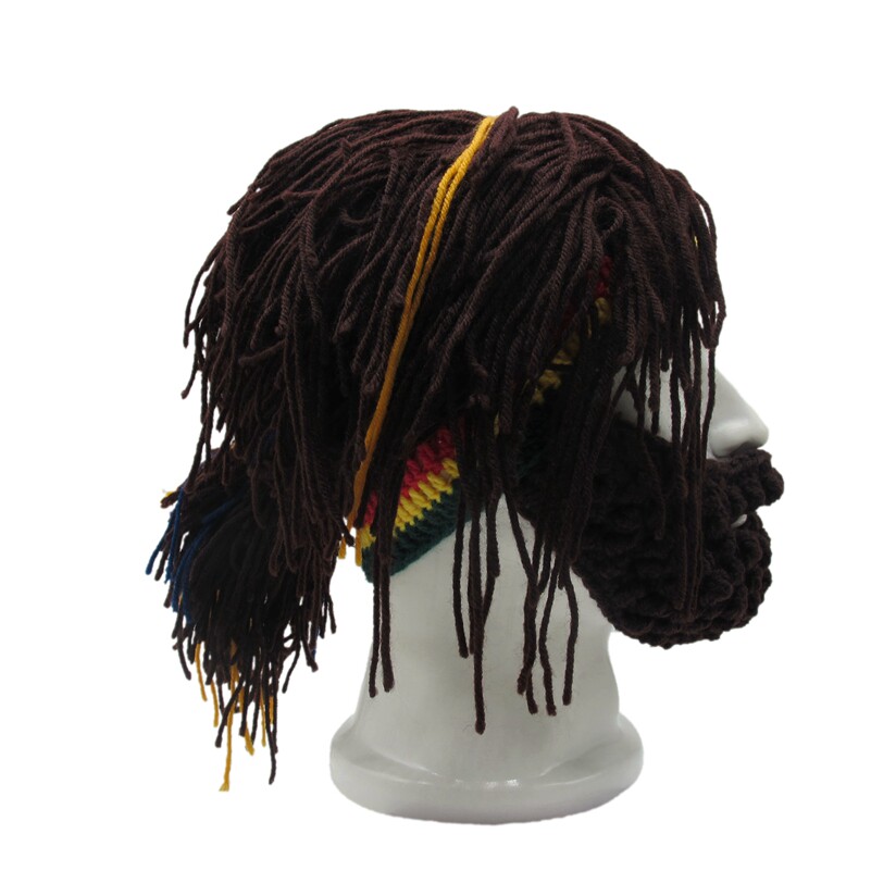 外貿爆款小臟辮毛線帽子男女假發絡腮大胡子針織毛線帽