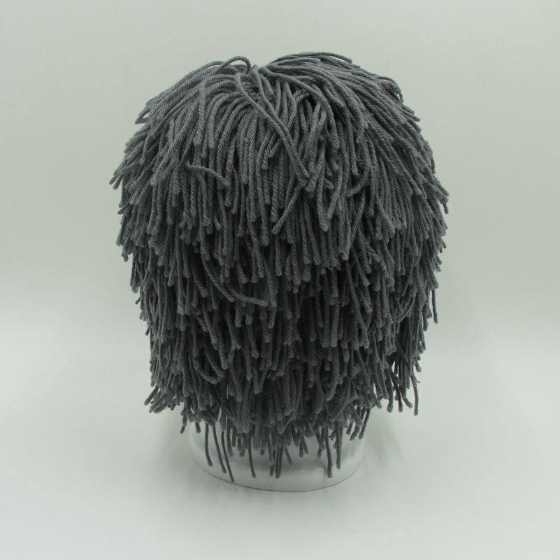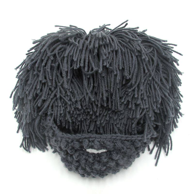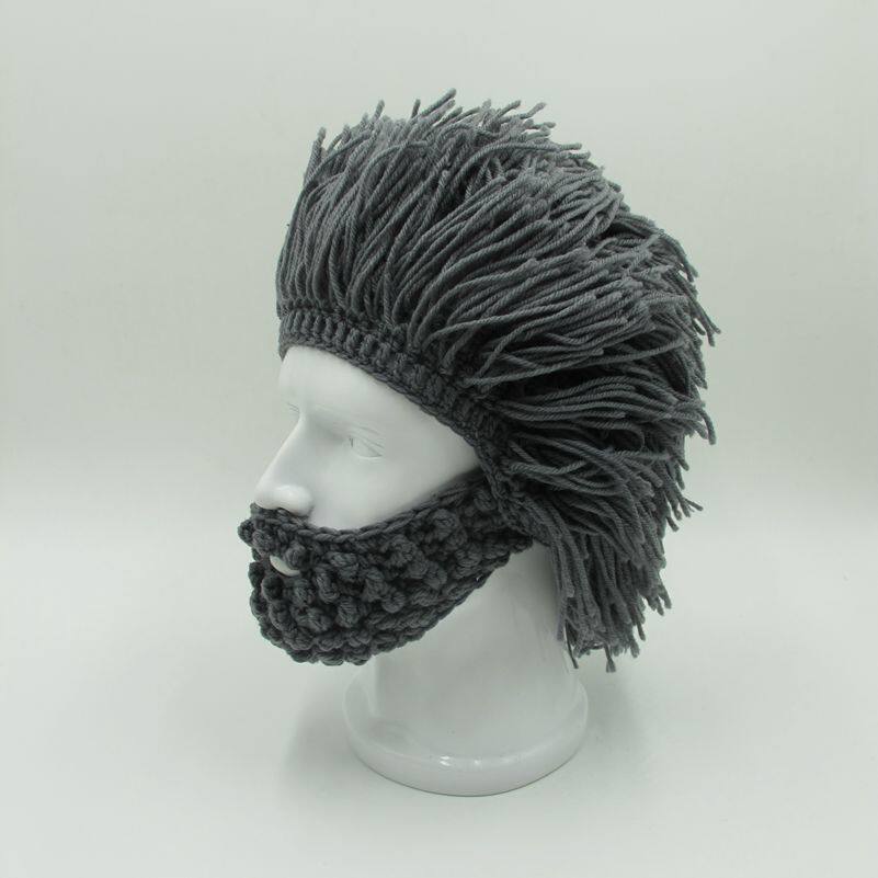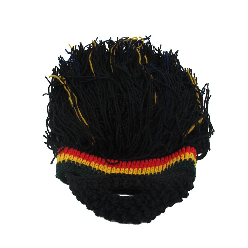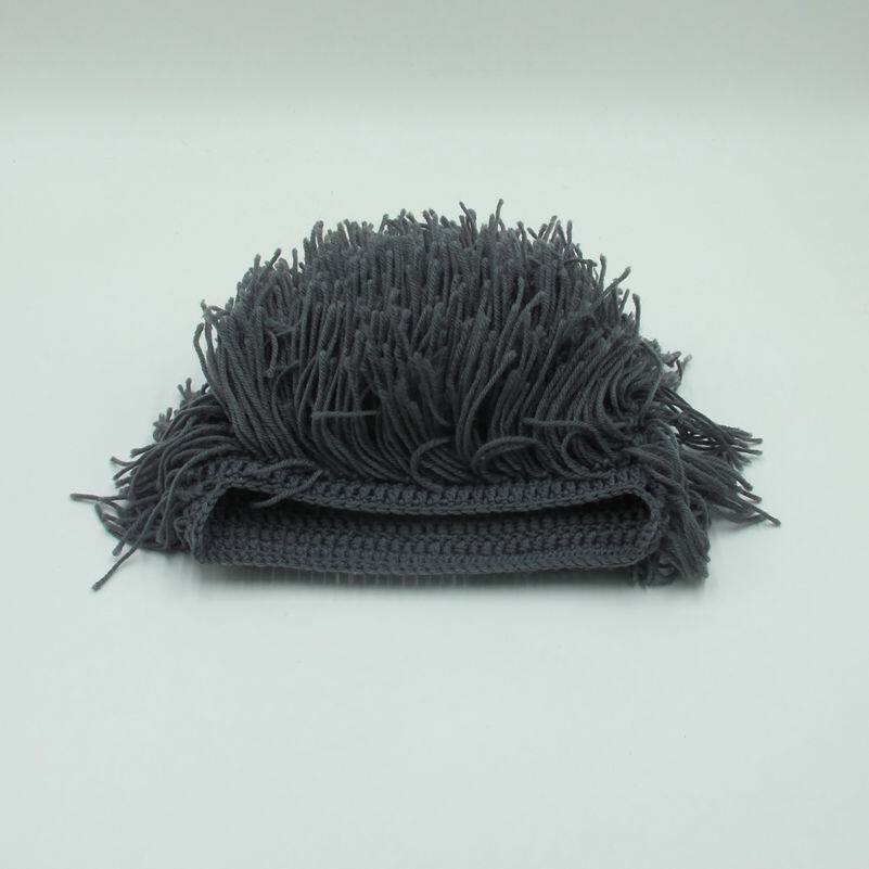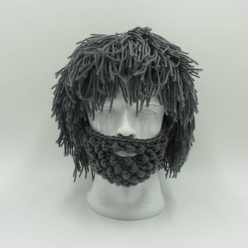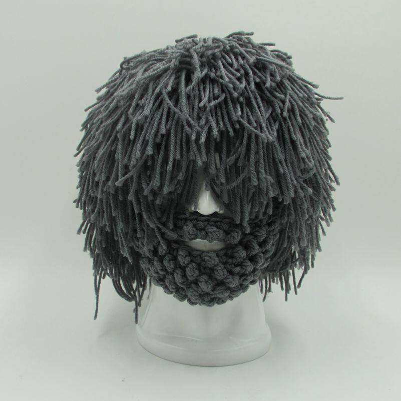 外貿爆款小臟辮毛線帽子男女假發絡腮大胡子針織毛線帽