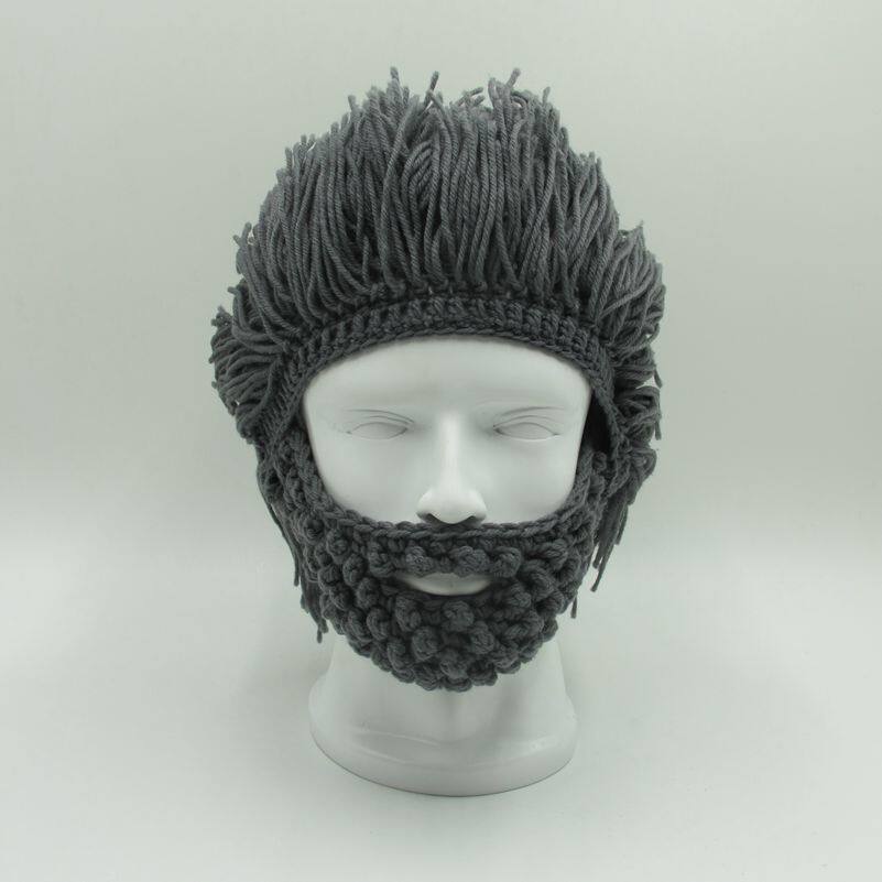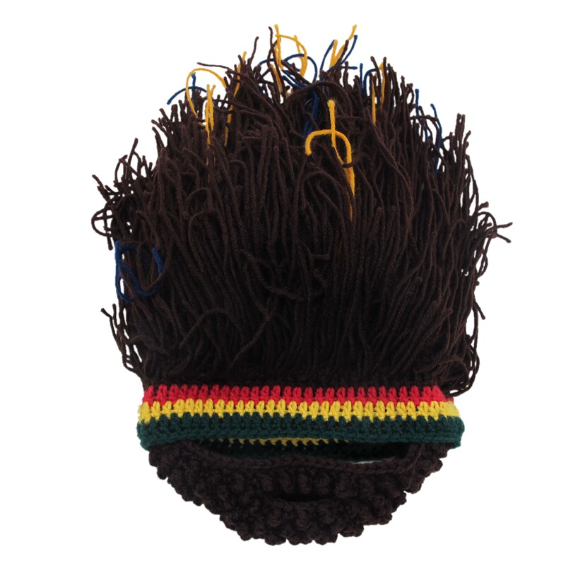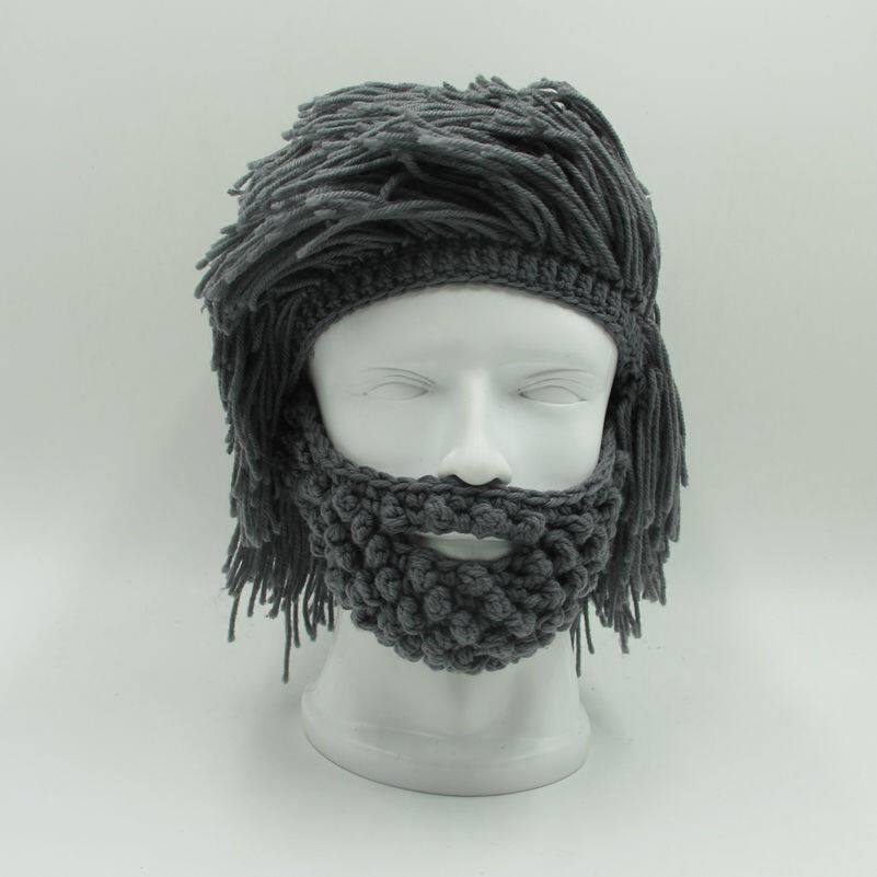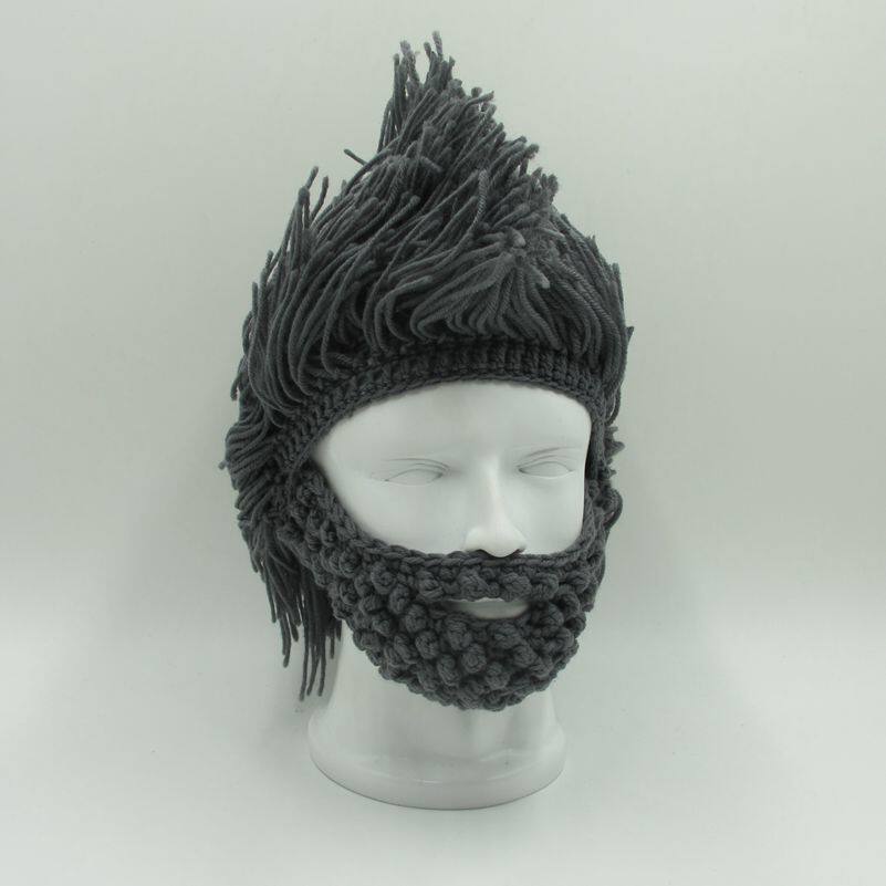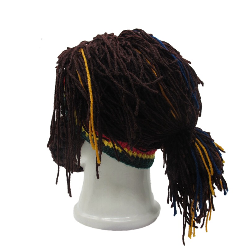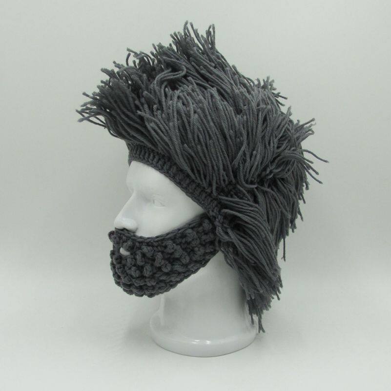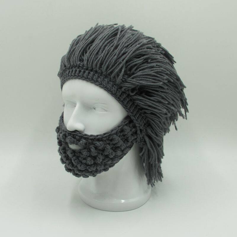 外貿爆款小臟辮毛線帽子男女假發絡腮大胡子針織毛線帽