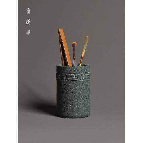 天然青石筆筒 茶筒茶具盒六君子收納筒茶具筒 茶道零配件桶毛筆筒